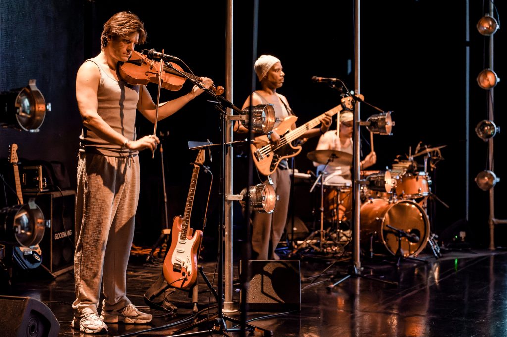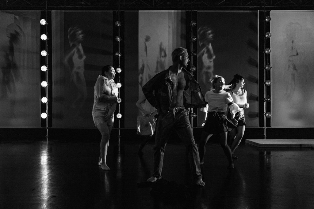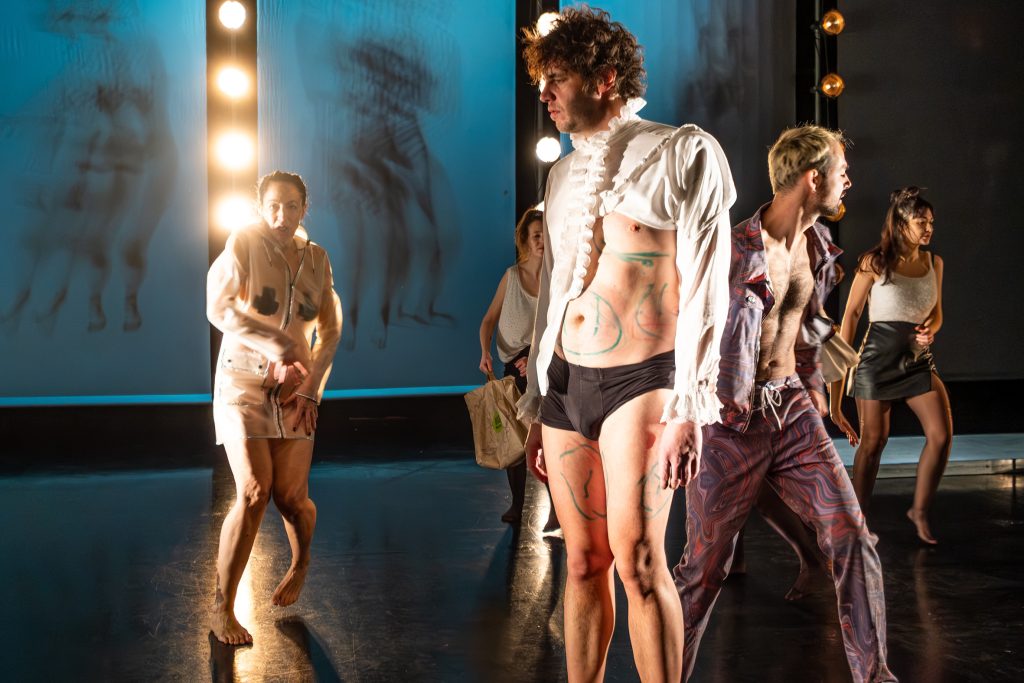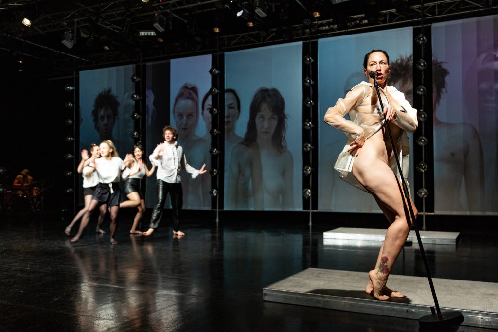 Begleitet vom pulsierenden Rhythmus der fantastischen Live-Band bewegen sich die Darstellerinnen und Darsteller unablässig über die Bühne. Die Projektionen im Hintergrund verstärken das Gefühl, dass sie – und wir – ständig in Bewegung sind. Rastlos. Suchend. Verletzlich. Nackt.